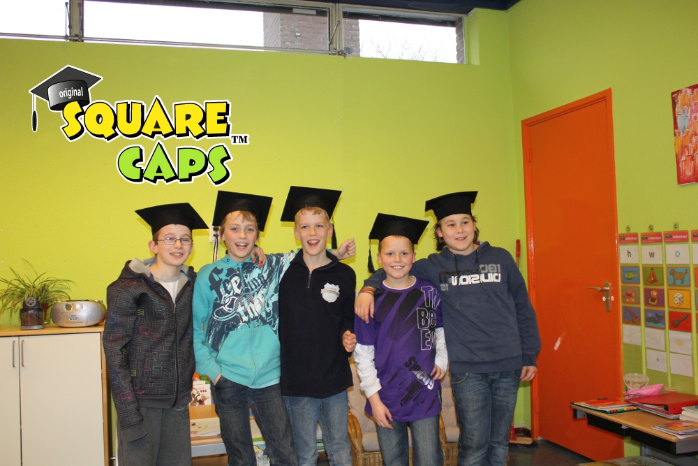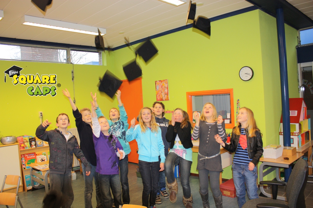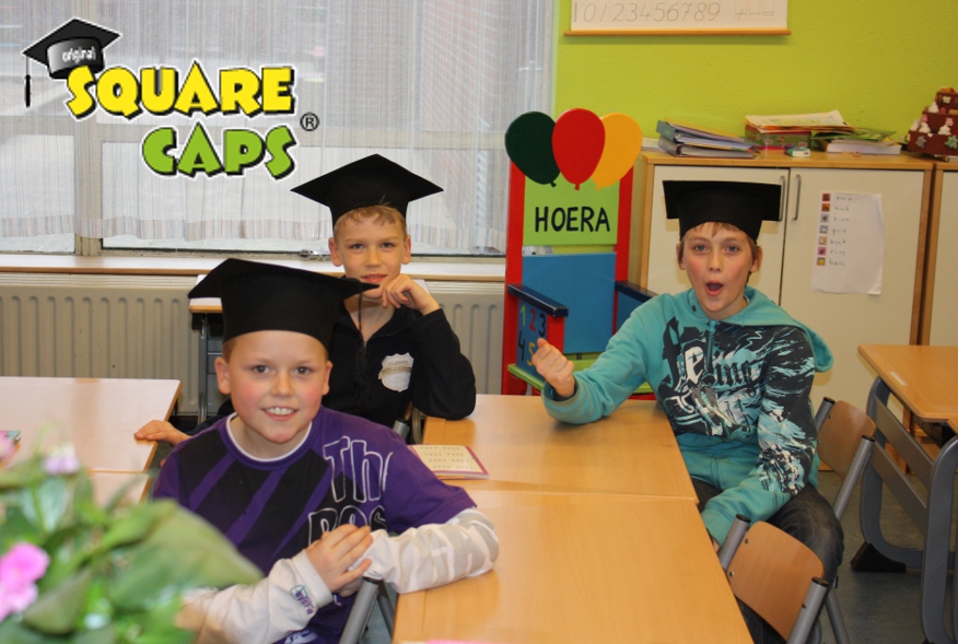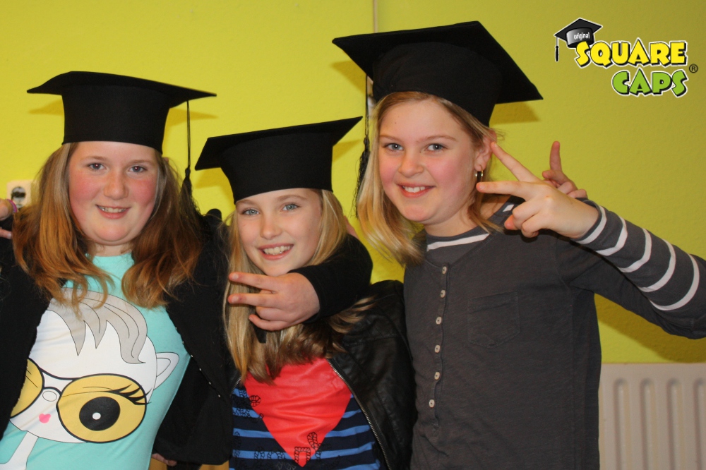 Met Junior Square Caps® kun je rekenen op de allerleukste fotomomenten. Foto´s  van de klas, samen met ouders en beste vrienden. En natuurlijk wanneer de kinderen hun Square Caps® de lucht ingooien ! Klik hier voor wat sfeerbeelden en foto's.