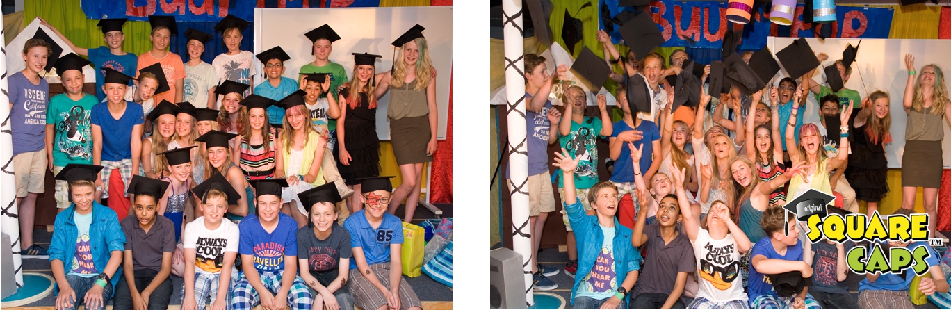 Met Junior Square Caps® kun je rekenen op de allerleukste fotomomenten. Foto´s  van de klas, samen met ouders en beste vrienden. En natuurlijk wanneer de kinderen hun Square Caps® de lucht ingooien ! Klik hier voor wat sfeerbeelden en foto's.